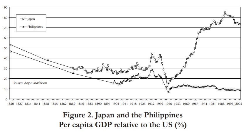 This outcome is a big improvement on our current world! A hundred million people are 10x wealthier and Americans get better off as well. This outcome was probably attainable without significant extra violence, and arguably would have been less violent than our current world given the Philippines’ history with authoritarianism. We severed ties with the Philippines mostly because of nativism, nationalism, and the lobbying of interest groups who benefitted from restricted trade and immigration. Abdicating the administration of the Philippine islands and cutting them off from our labor markets, investment, and institutions was a mistake and a moral failure.